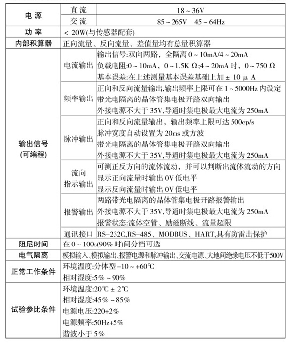 7、流量计为双向测量系统,内装三个积算器:正向总量、反向总量及差值总量;可显示.庄、反 流量,并具有多种输出:电流、脉冲、数字通讯、HART;