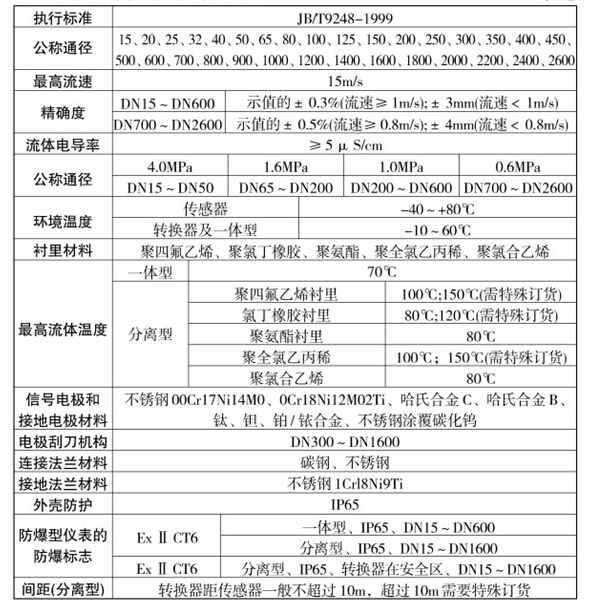 3、系列公称通径DN15~DN3000。传感器衬里和电极材料有多种选择;