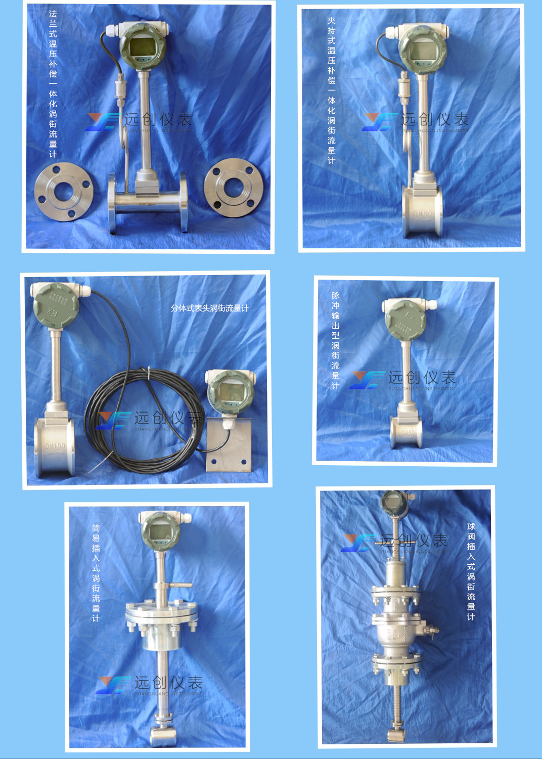 ?多种结构,有分体式、一体法兰、夹装式等。一体法兰式可集流量探头,微处理器,压力、温度传感器于一体。采用内置式组合,使结构更加紧凑,可直接测量流体的流量,压力和温度。对于气体计量,可自动实时跟踪补偿和压缩因子修正。