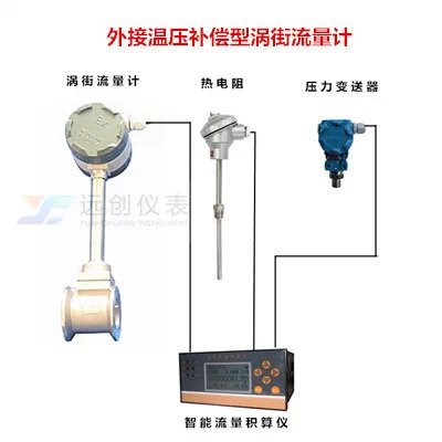 YC-LUGB型外接温压补偿涡街流量计是根据卡门(Karman)涡街原理测量气体、蒸汽或液体的体积流量、标况的体积流量或质量流量的体积流量计。并可作为流量变送器应用于自动化控制系统中。 外接温压补偿涡街流量计采用先进的差动技术,配合隔离、屏蔽、滤波等措施,克服了同类产品抗震性差、小信号数据紊乱等问题,并采用了*的传感器封装技术和防护措施,保证了产品的可靠性。产品有基本型和复合型两种型式,基本型测量单*量信号;复合型可同时实现温度、压力、流量的测量。每种型式都有整体、分体结构,以适应不同的安装环境。 外接温压补偿涡街流量计原理: 在流体中设置三角柱型旋涡发生体,则从旋涡发生体两侧交替地产生两列有规则的旋涡,这种旋涡称为卡门涡街,在漩涡发生体中装入电容检测探头或压电检测探头及相应匹配电路,即可构成电容检测式涡街流量/传感器或压电检测式涡街流量传感器。 旋涡列在旋涡发生体下游非对称地排列。设旋涡的发生频率为f,被测介质来流的平均速度为V,旋涡发生体迎流面宽度为d,表体通径为D,根据卡曼涡街原理,有如下关系式: f=St.V/〔(1-1.25d/D)d〕 式中:f-发生体一侧产生的卡门旋涡频率 St-斯特罗哈尔数 V-流体的平均流速 d-柱体流面宽度 D-管道内径 在曲线表中St=0.17的平直部分,漩涡的释放频率与流速成正比,即为涡街流量传感器测量范围度。只要检测出频率f就可以求得管内流体的流速,由流速V求出体积流量。 Q=3600f/K或M=ρ3600 f/K 式中:K=仪表常数(1/m³)。 M=质量流量 Q=体积流量(m³/h) ρ=介质密度(kg/m³) F=频率Hz 涡街流量计技术参数: 公称通径(mm) | 15,20,25,32,40,50,65,80,100,125,150,200,250,300,(300~1000插入式) | 公称压力(MPa) | DN15-DN200 4.0(>4.0协议供货),DN250-DN300 1.6(>1.6协议供货) | 介质温度(℃) | 压电式:-40~260,-40~320;电容式: -40~300, -40~400,-40~450(协议订货) | 本体材料 | 1Cr18Ni9Ti,(其它材料协议供货) | 允许振动加速度 | 压电式:0.2g 电容式:1.0~2.0g | 精确度 | ±1%R,±1.5%R,±1FS;插入式:±2.5%R,±2.5%FS | 范围度 | 1:6~1:30 | 供电电压 | 传感器:+12V DC,+24V DC;变送器:+12V DC ,+24V DC;电池供电型:3.6V电池 | 输出信号 | 方波脉冲(不包括电池供电型):高电平≥5V,低电平≤1V;电流:4~20mA | 压力损失系数 | 符合JB/T9249标准 Cd≤2.4 | 防爆标志 | 本安型:ExdⅡia CT2-T5隔爆型:ExdⅡCT2-T5 | 防护等级 | 普通型IP65 潜水型 IP68 | 环境条件 | 温度-20℃~55℃,相对湿度5%~90%,大气压力86~106kPa | 适用介质 | 气体、液体、蒸汽 | 传输距离 | 三线制脉冲输出型:≤300m,两线制标准电流输出型 (4~20mA):负载电阻≤750Ω |